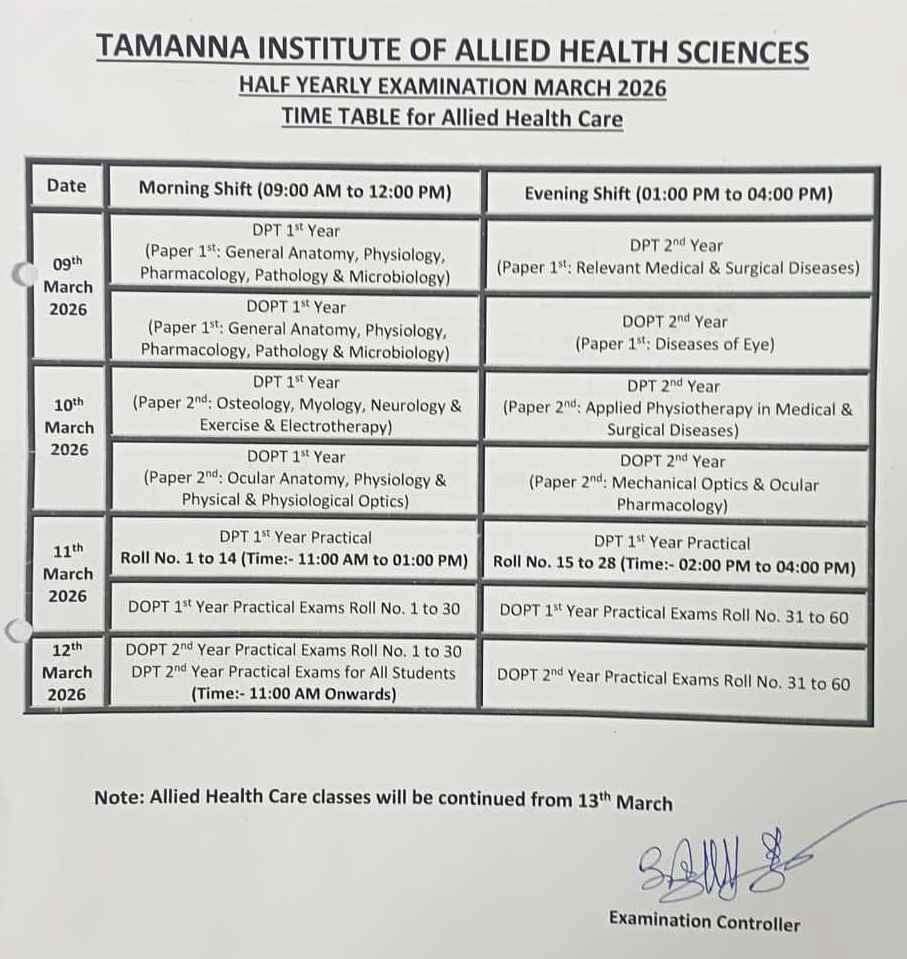 SUPPLEMENTARY EXAM TIME TABLE 25-2026